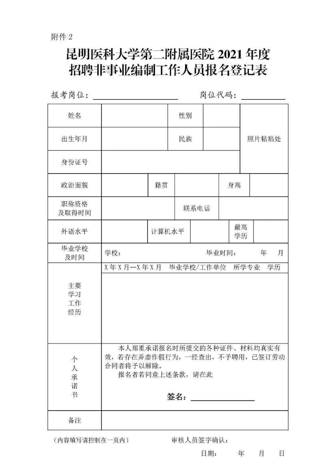 (1)《昆明醫(yī)科大學(xué)第二附屬醫(yī)院2021年度招聘非事業(yè)編制工作人員報(bào)名登記表》(附件2);