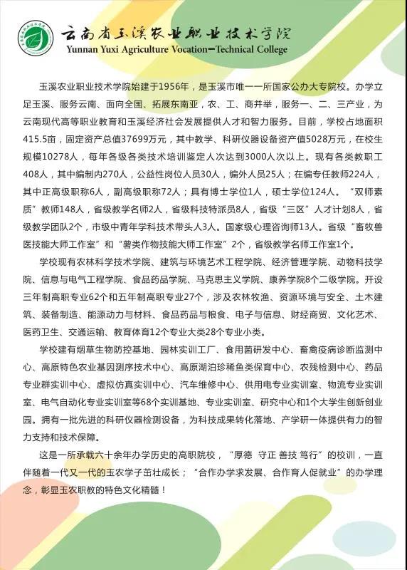 玉溪農(nóng)業(yè)職業(yè)技術(shù)學(xué)院2021年招生簡章