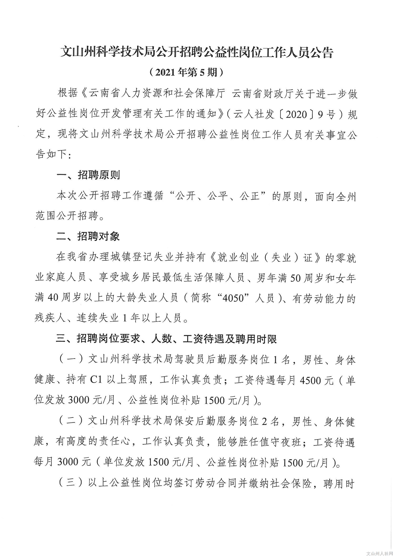 文山州科學(xué)技術(shù)局公開招聘公益性崗位工作人員公告