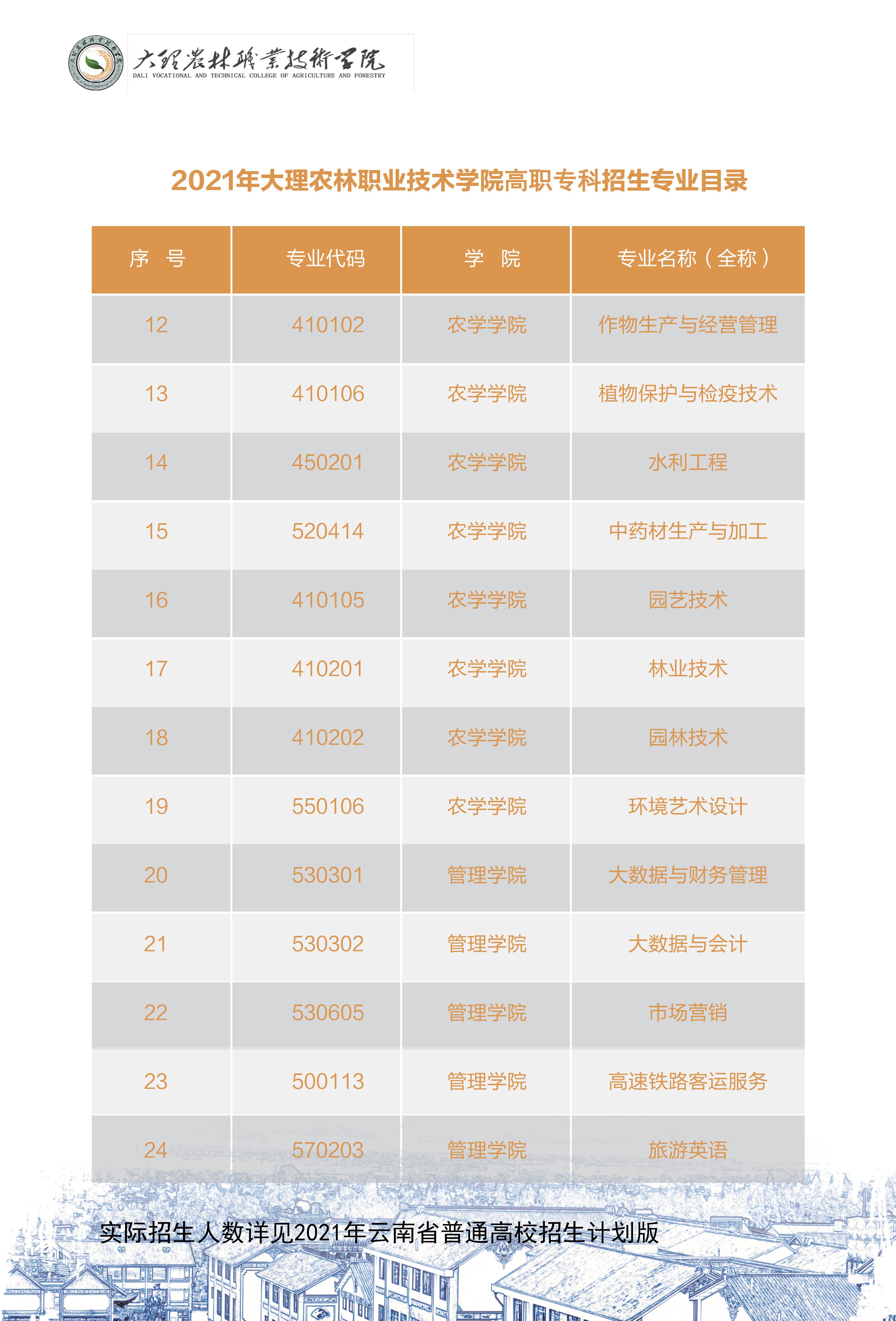 2021年大理農(nóng)林職業(yè)技術(shù)學院招生簡章