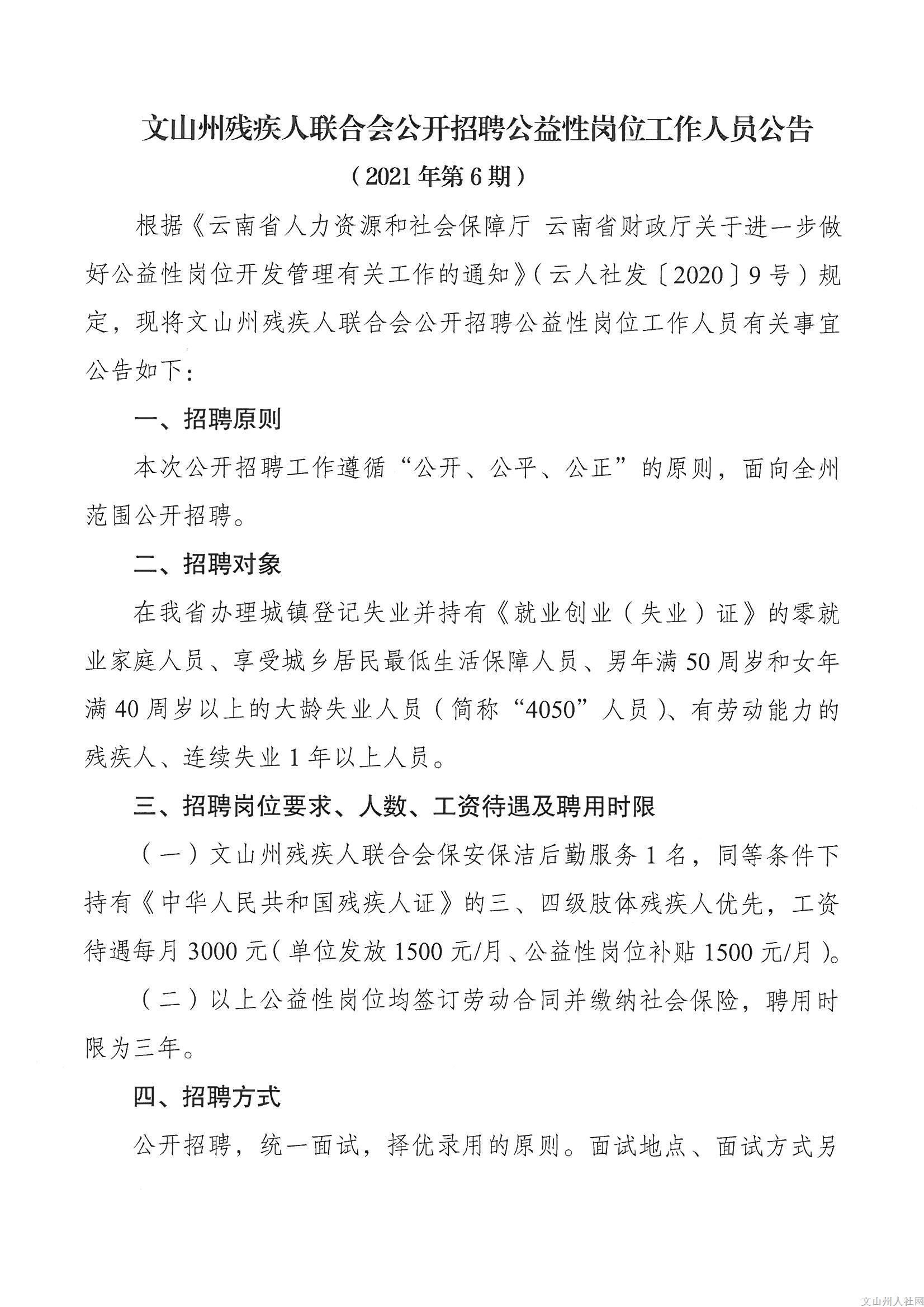 文山州殘疾人聯(lián)合會(huì)公開(kāi)招聘公益性崗位工作人員公告(2021年第6期)
