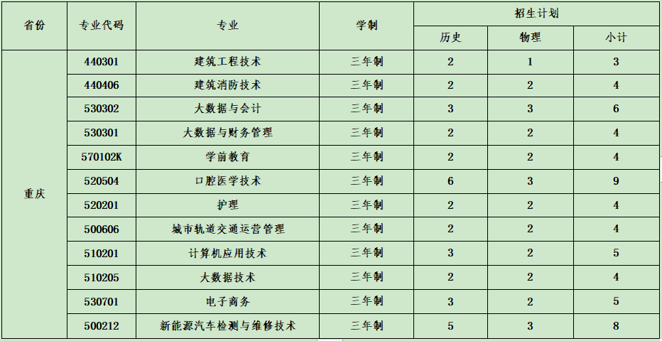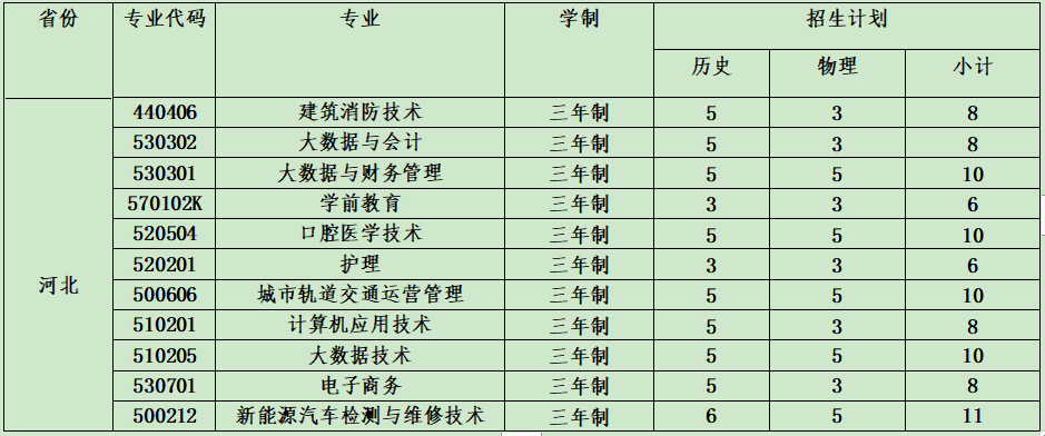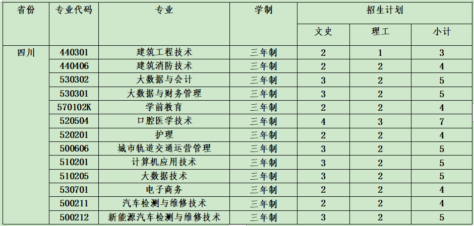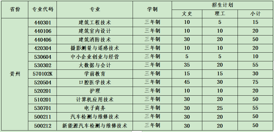 云南城市建設(shè)職業(yè)學(xué)院2021年省外招生計劃表