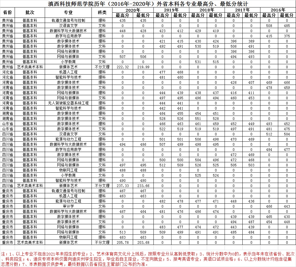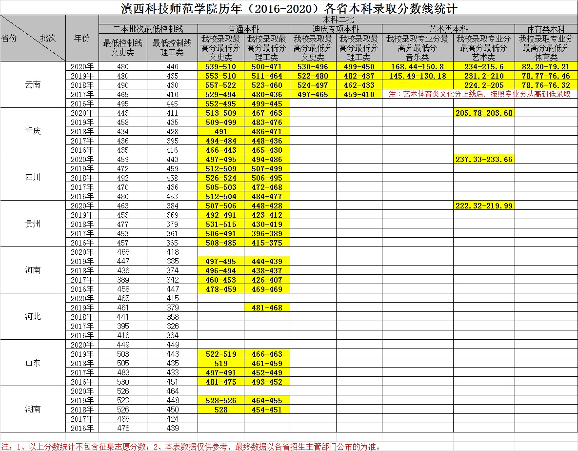 滇西科技師范學(xué)院歷年(2014-2020)各省錄取分?jǐn)?shù)線統(tǒng)計(jì)(高清PDF點(diǎn)此下載)
