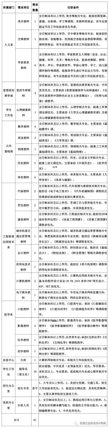 云南三鑫職業(yè)技術(shù)學(xué)院2021年招聘