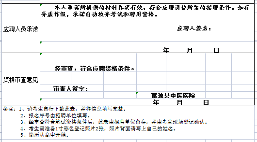 1.報(bào)名表信息填寫(xiě)。報(bào)名表可在富源縣中醫(yī)醫(yī)院官方網(wǎng)http://www.fyxzyyy.cn/自行下載,請(qǐng)各位考生按照填表要求認(rèn)真填寫(xiě),字跡清晰,涂改無(wú)效。報(bào)名時(shí)請(qǐng)考生將報(bào)名表一并上交報(bào)名點(diǎn)。