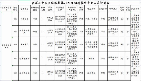 附件:《富源縣中醫(yī)醫(yī)院醫(yī)共體2021年招聘編外專(zhuān)業(yè)技術(shù)人員計(jì)劃表》