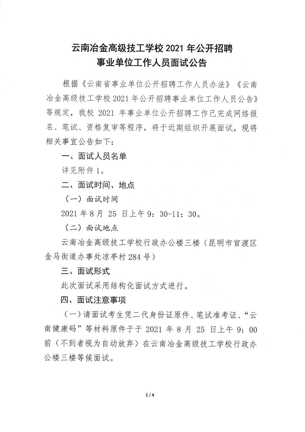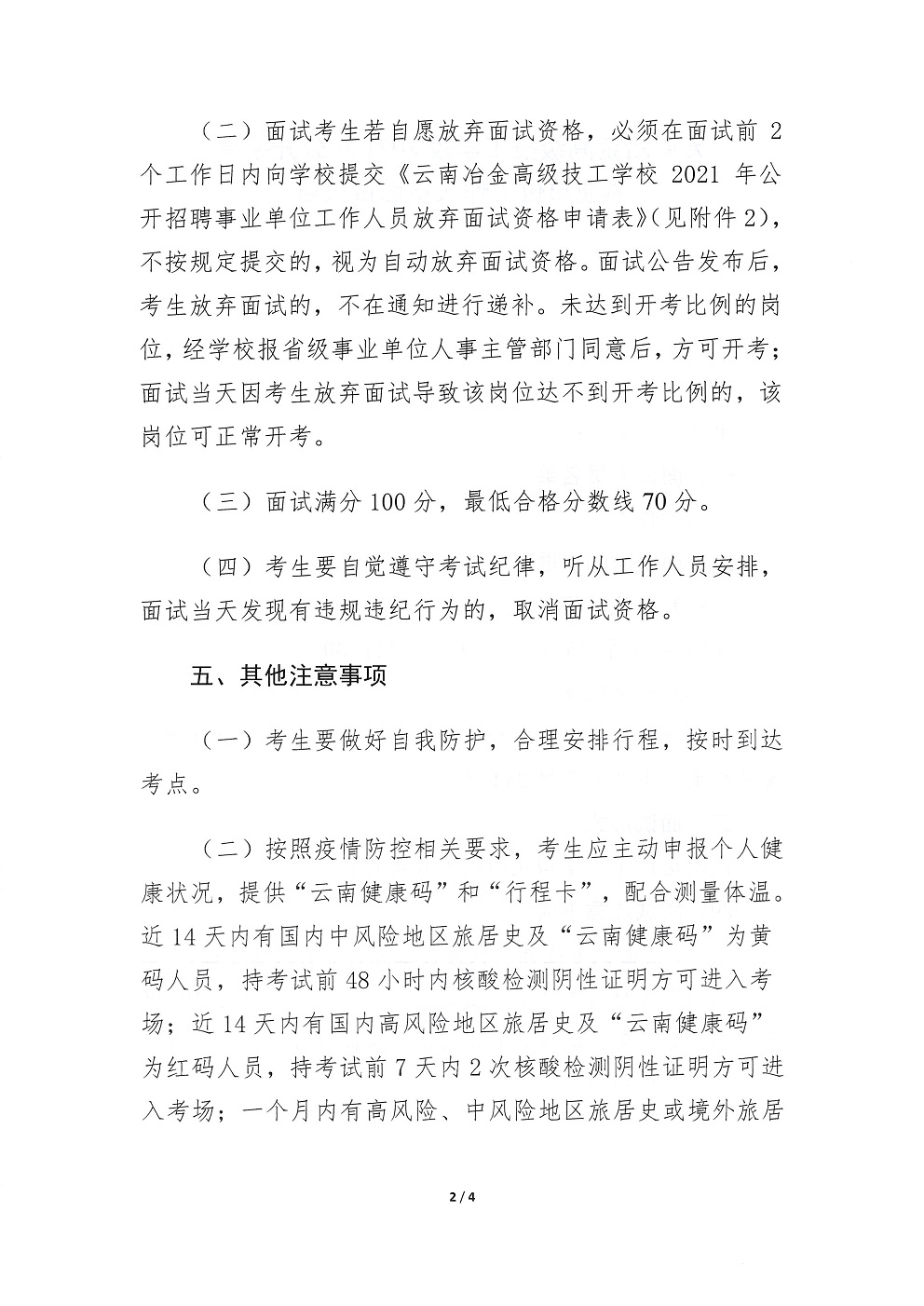 云南冶金高級技工學校2021年公開招聘事業(yè)單位工作人員面試公告