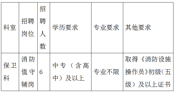 (4)崗位要求的其他相關(guān)證明(如:《消防設(shè)施操作員》五級(初級)及以上證書)復(fù)印件1份;