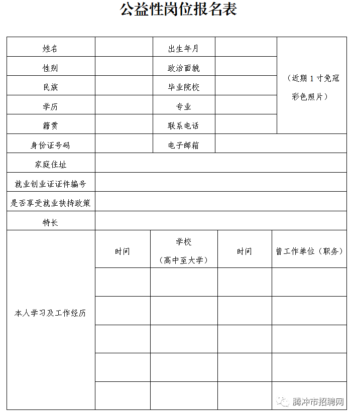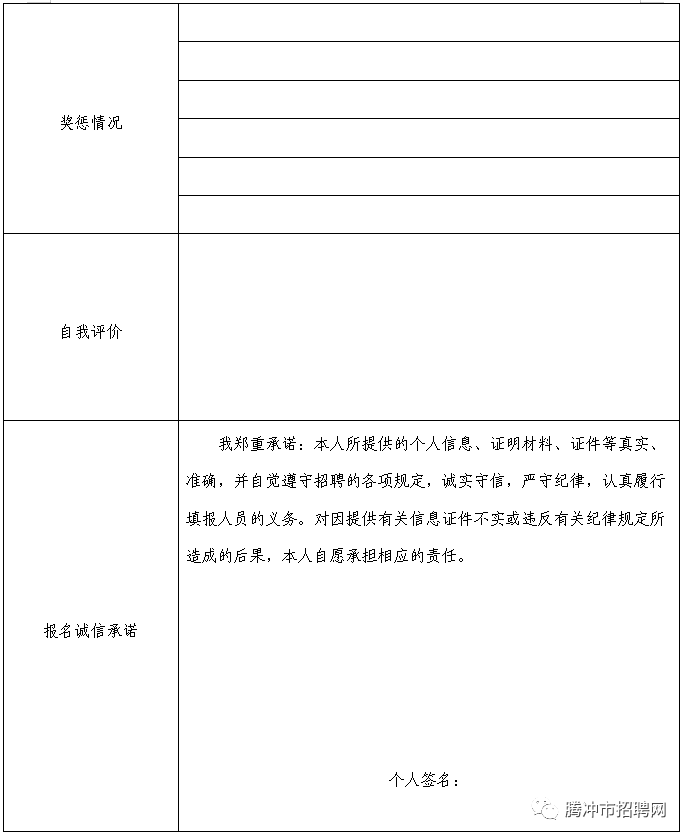 3.報名地點(diǎn):騰沖市人力資源和社會保障局人力資源市場辦公室(騰沖市騰越街道山源社區(qū)文筆小區(qū)272號四樓)。