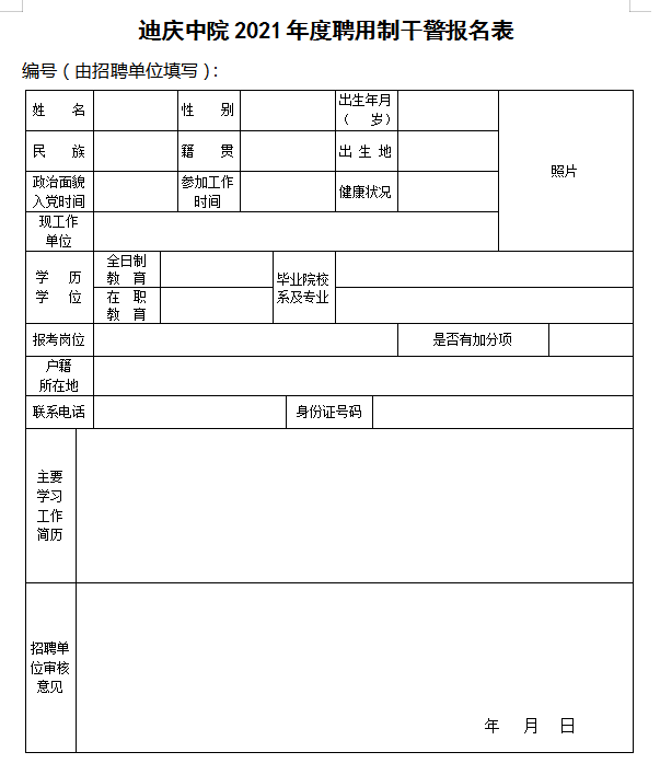 附件:《迪慶州中級人民法院2021年公開招聘聘用制干警崗位表》《報名表》