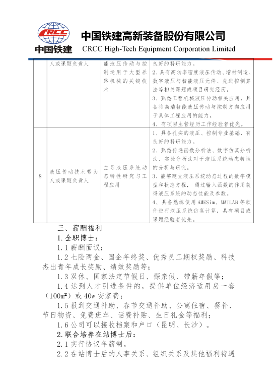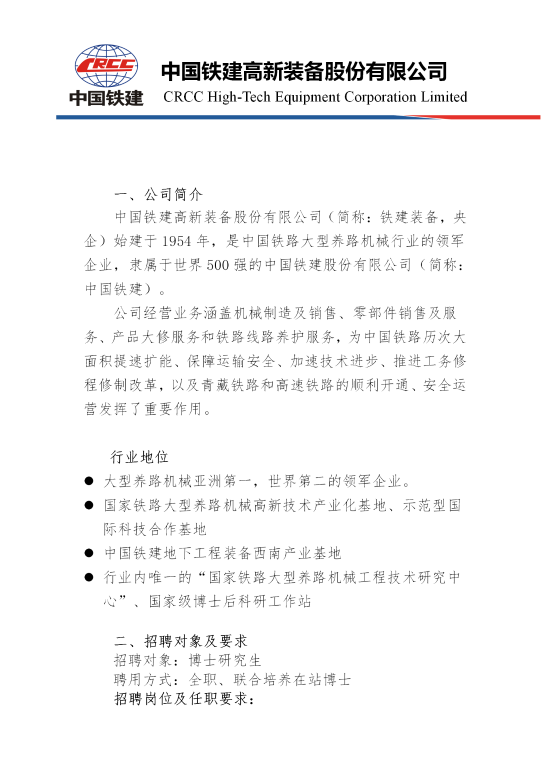 鐵建裝備2021-2022年高層次人才招聘簡(jiǎn)章