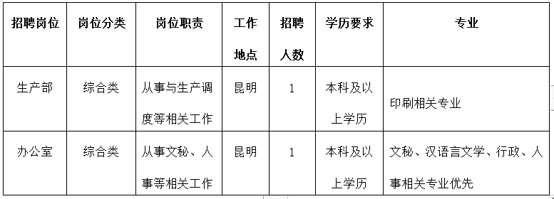 云南出版印刷集團(tuán)有限責(zé)任公司國(guó)方分公司2021年招聘崗位及條件