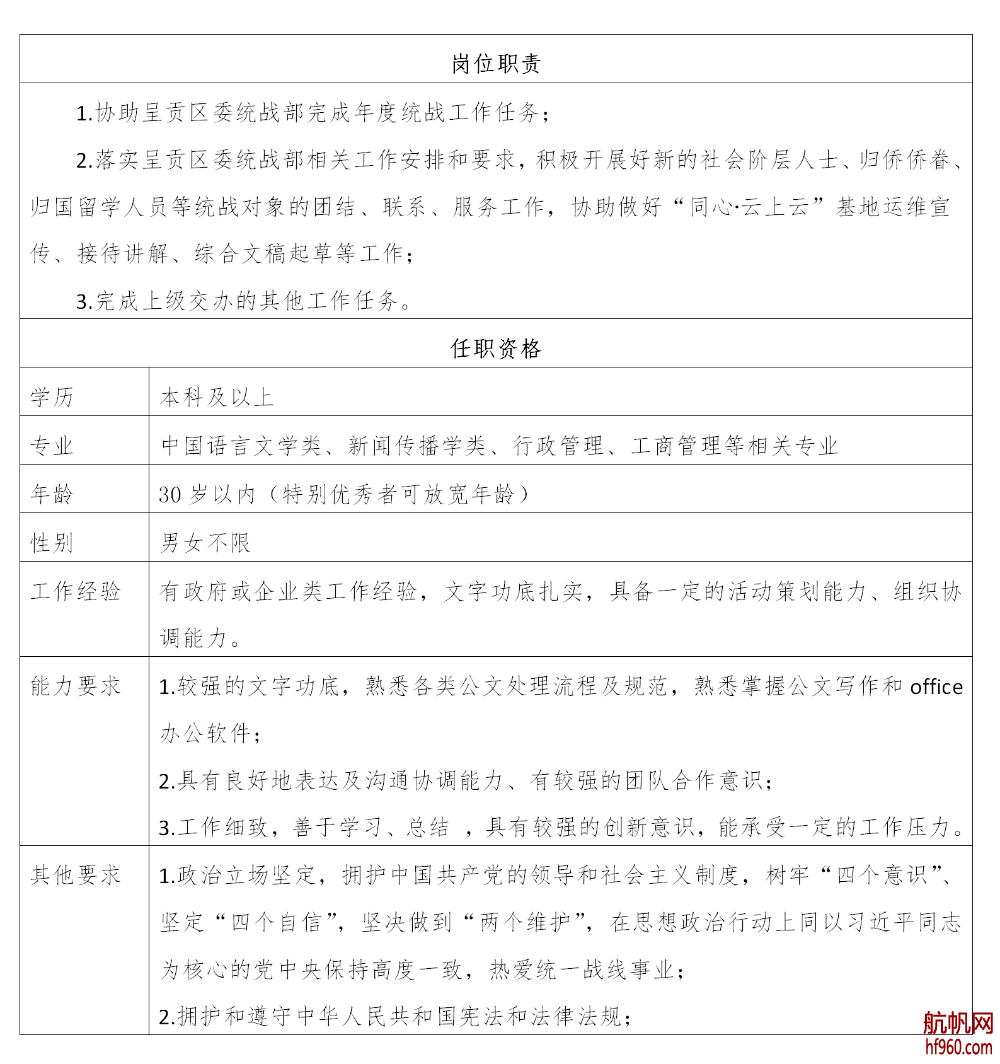 (一)招聘統(tǒng)戰(zhàn)專員2人;