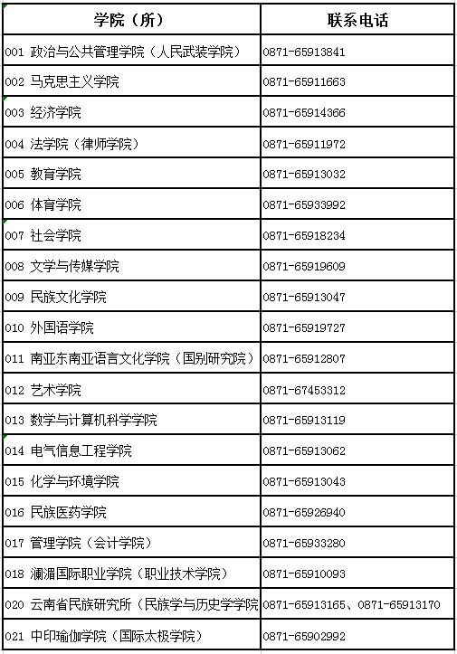2022年云南民族大學(xué)研究生各學(xué)院(所)招生咨詢(xún)電話(huà)