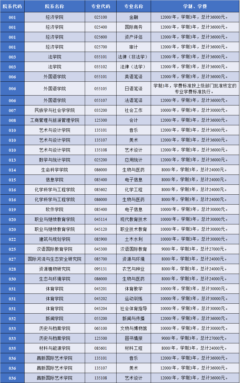 2.全日制專業(yè)學(xué)位學(xué)費標準見下表: