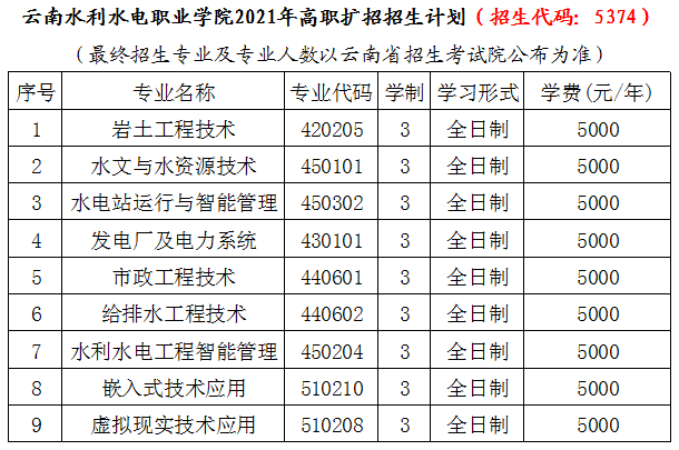 云南水利水電職業(yè)學(xué)院2021年高職擴(kuò)招招生簡(jiǎn)章