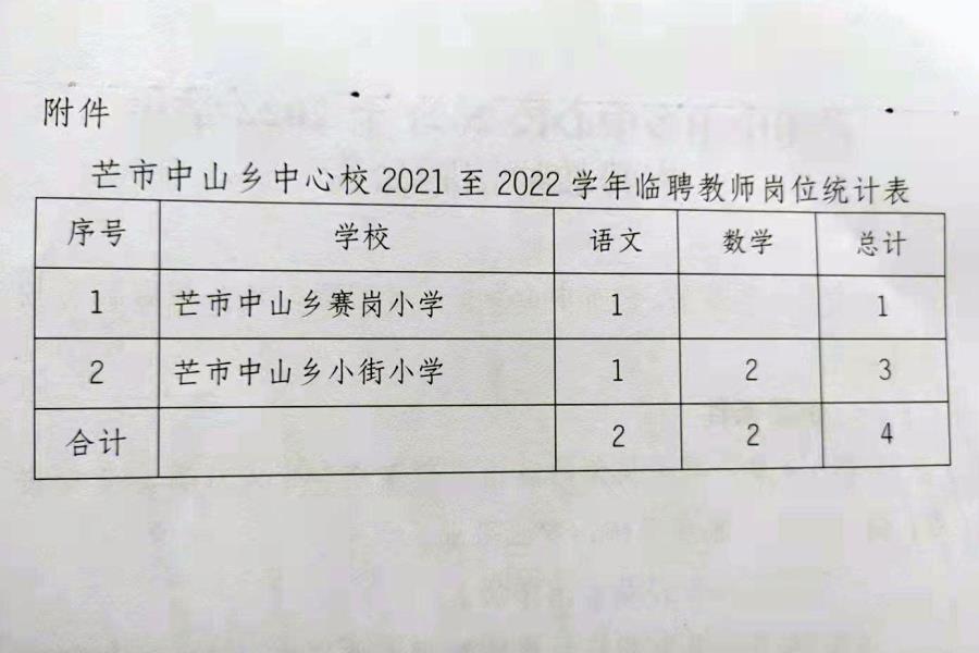 因學校工作需要,芒市中山鄉(xiāng)中心?,F(xiàn)面向社會招聘臨聘教師4人(詳見附件1)。