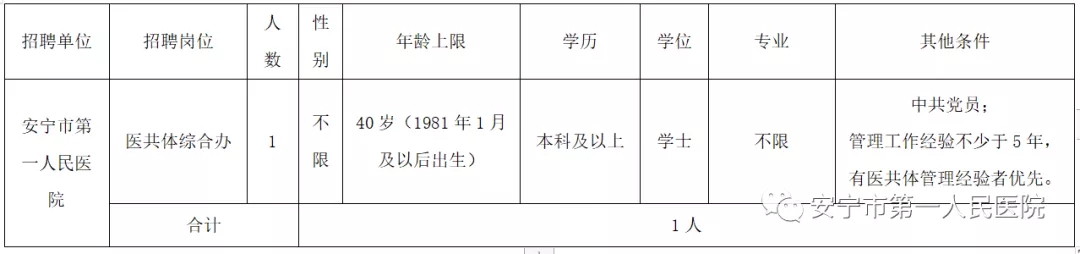 安寧市第一人民醫(yī)院2021年工作人員(非事業(yè)編制)招聘啟事