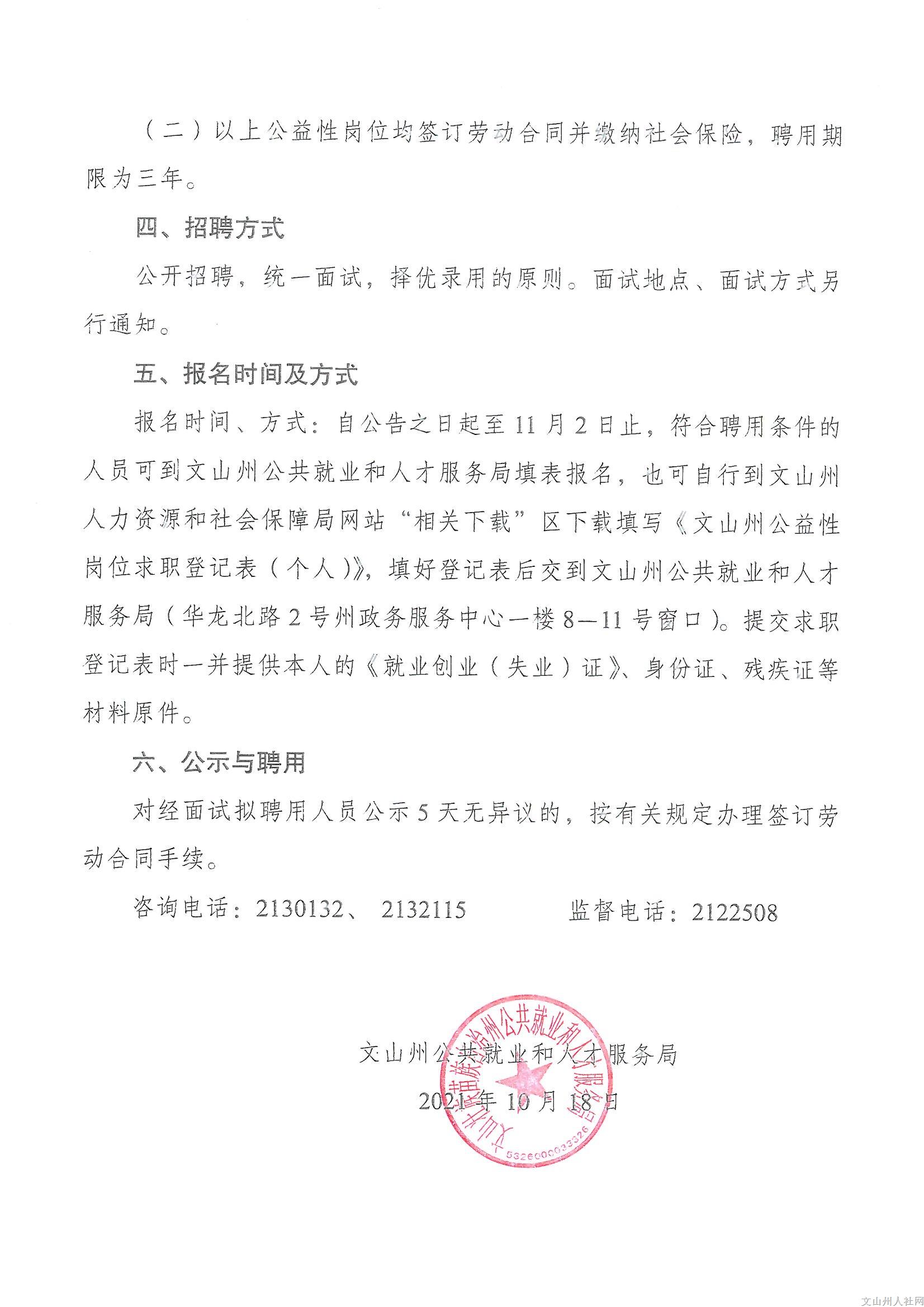 文山州公共就業(yè)和人才服務局公開招聘公益性崗位工作人員公告