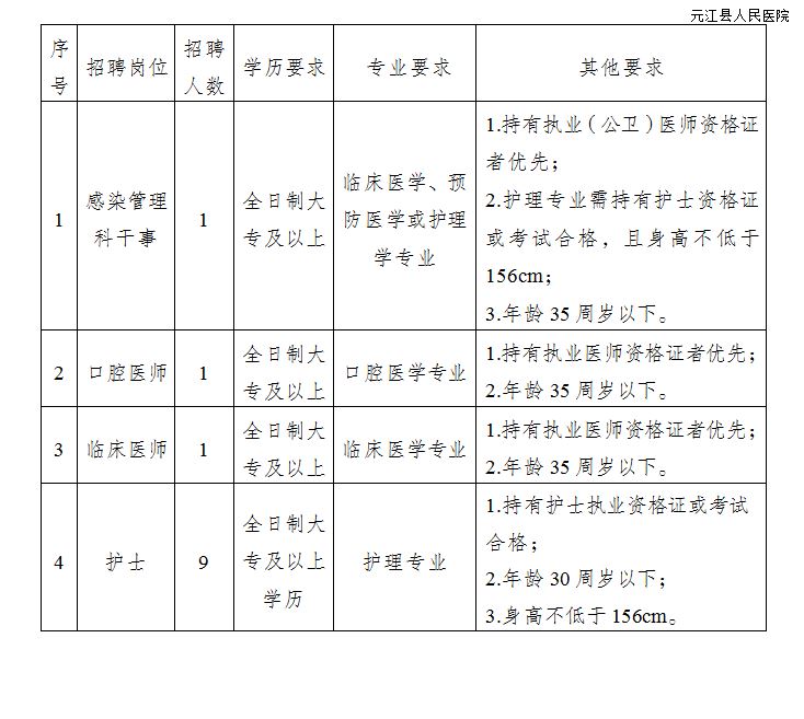 3.報(bào)名地點(diǎn):元江縣人民醫(yī)院人事科(綜合樓四樓);