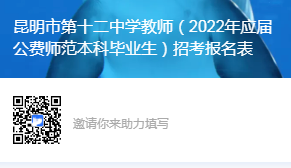 請有意報(bào)考我校并符合上述條件的人員,請?jiān)谝?guī)定時間內(nèi)通過我校提供的郵箱88145238@qq.com提交登記表,或到昆明市第十二中學(xué)教務(wù)處現(xiàn)場報(bào)名,報(bào)名截止時間為2021年10月26日下午17:00。