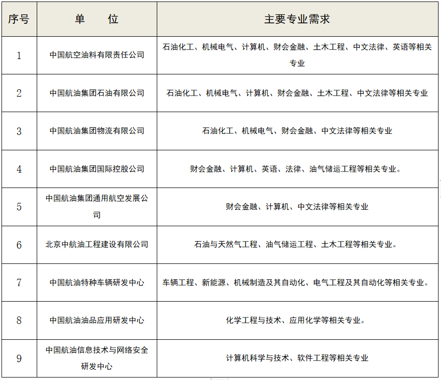中國航空油料集團(tuán)有限公司2022年高校畢業(yè)生招聘公告
