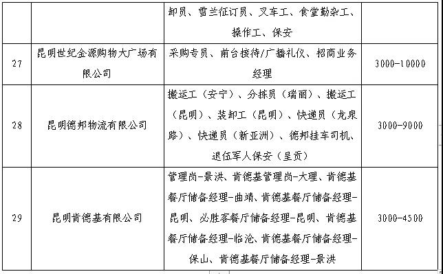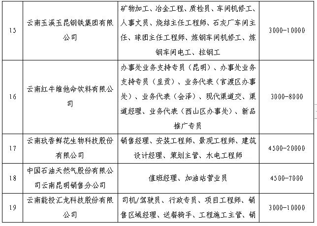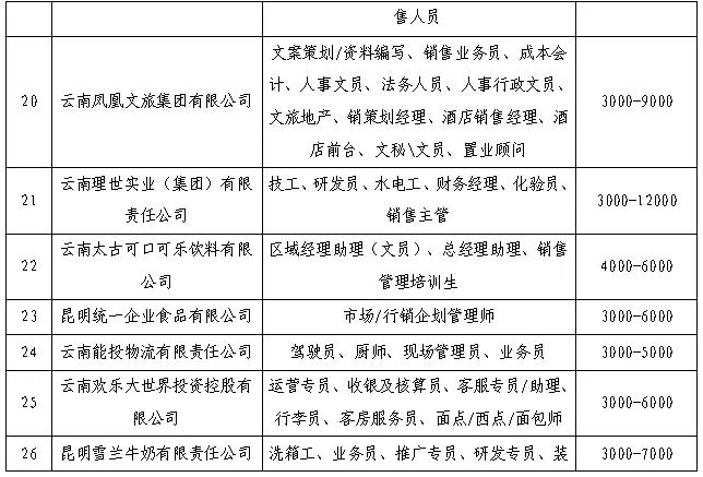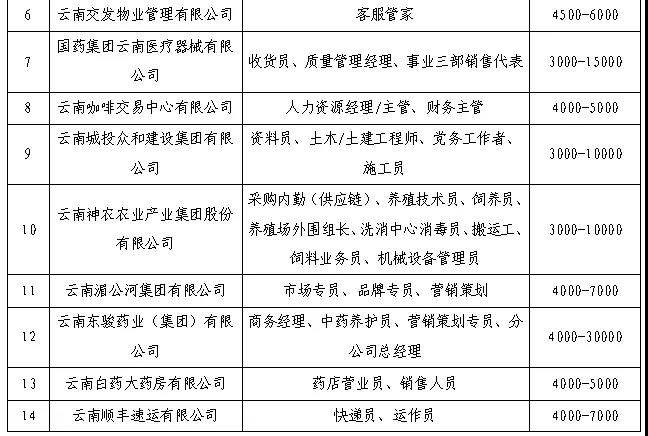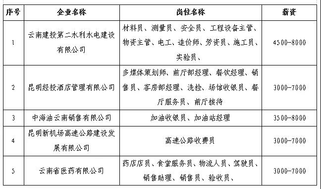 附件:2021年云南省退役軍人專場招聘會部分崗位表