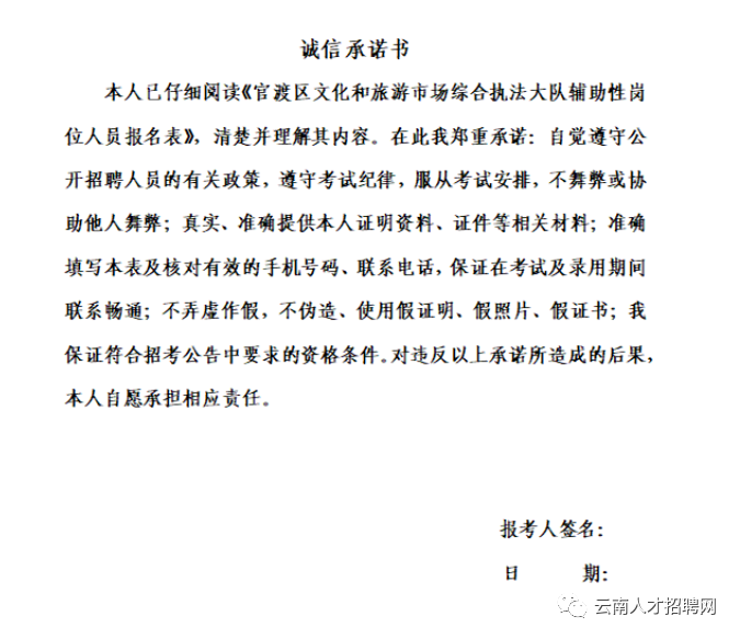 (5)《官渡區(qū)文化和旅游市場(chǎng)綜合執(zhí)法大隊(duì)輔助性崗位人員報(bào)名表》