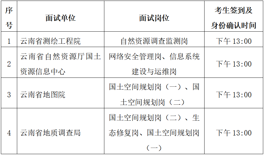 根據(jù)《云南省自然資源廳所屬事業(yè)單位2021年公開招聘工作人員公告》,現(xiàn)將省自然資源廳所屬事業(yè)單位2021年公開招聘工作人員面試有關(guān)事項(xiàng)予以公告。