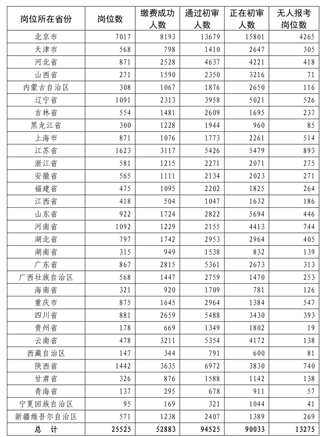 1.截至12月7日17時(shí)各省份崗位報(bào)考情況統(tǒng)計(jì)表