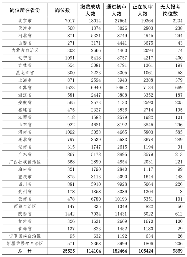 1.截至12月8日17時(shí)各省份崗位報(bào)考情況統(tǒng)計(jì)表