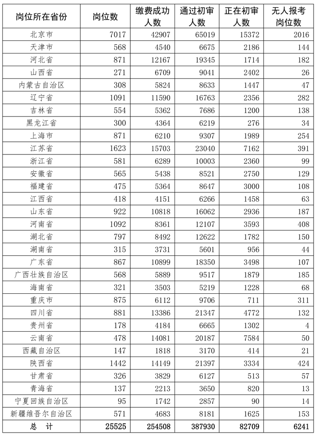 1.截至12月9日18時(shí)各省份崗位報(bào)考情況統(tǒng)計(jì)表