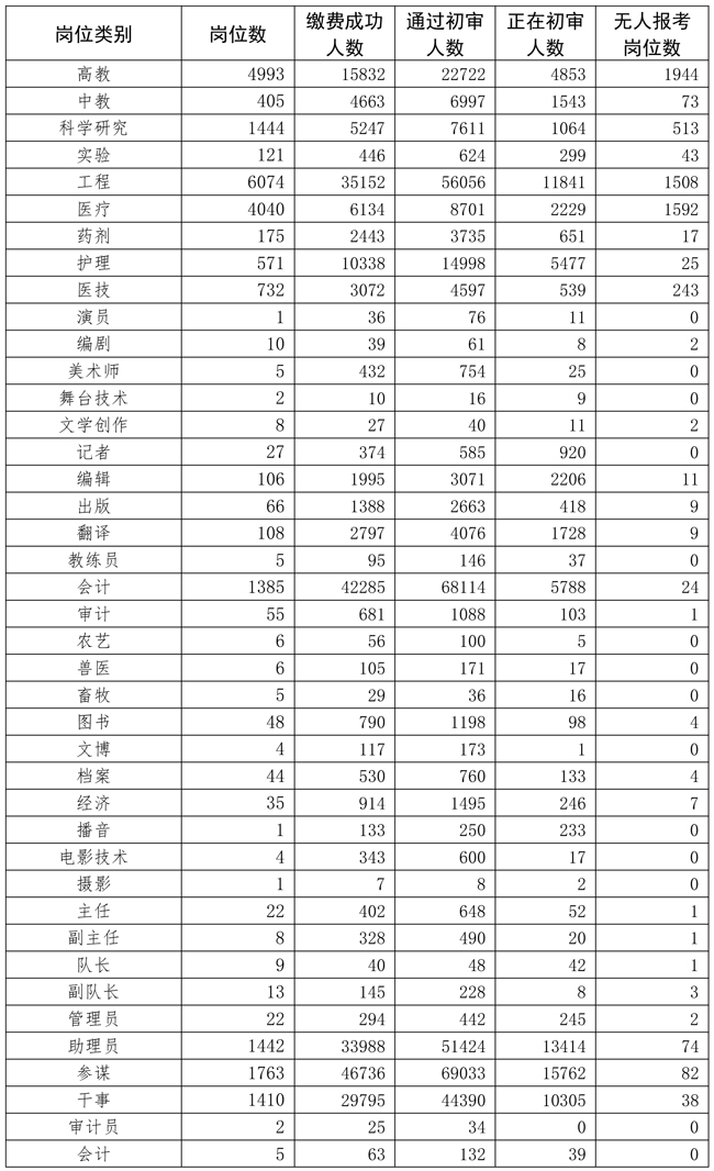 2.截至12月9日18時(shí)各崗位類別報(bào)考情況統(tǒng)計(jì)表