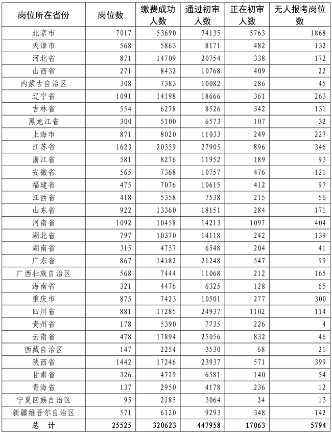 1.截至12月10日17時(shí)各省份崗位報(bào)考情況統(tǒng)計(jì)表