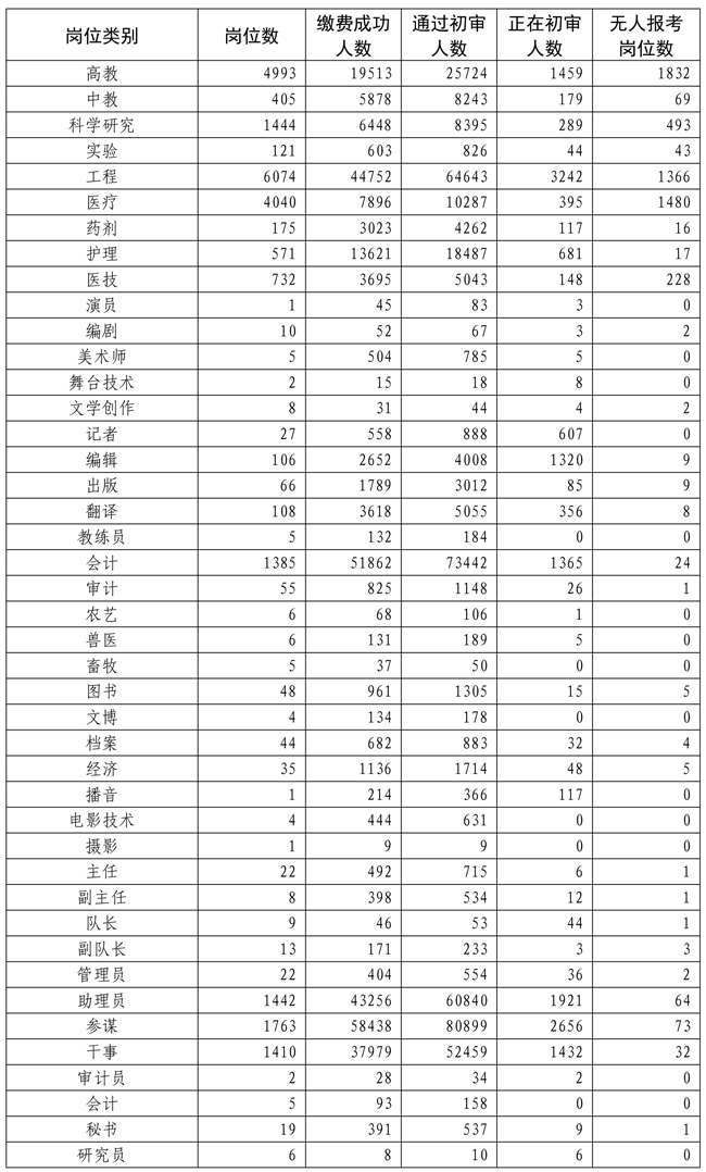2.截至12月10日17時(shí)各崗位類別報(bào)考情況統(tǒng)計(jì)表
