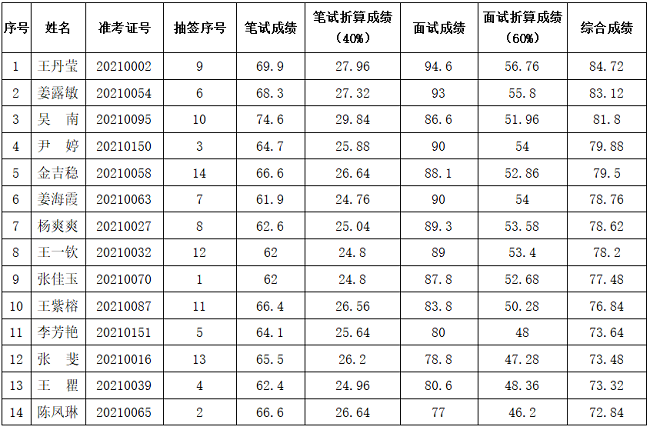 根據(jù)《昆明市投資促進(jìn)局2021年11月對(duì)外公開招聘勞務(wù)派遣制工作人員公告》程序,現(xiàn)就筆試、面試綜合成績公示如下: