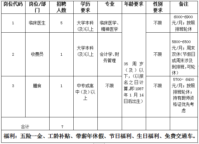 根據(jù)昆明市精神病院發(fā)展需要,現(xiàn)面向社會誠聘7名優(yōu)秀人才,本次招聘將委托第三方招聘服務機構負責,采用公開發(fā)布招聘公告、報名、資格審查、筆試、面試、體檢、公示、錄用的程序進行,具體招聘公告如下: