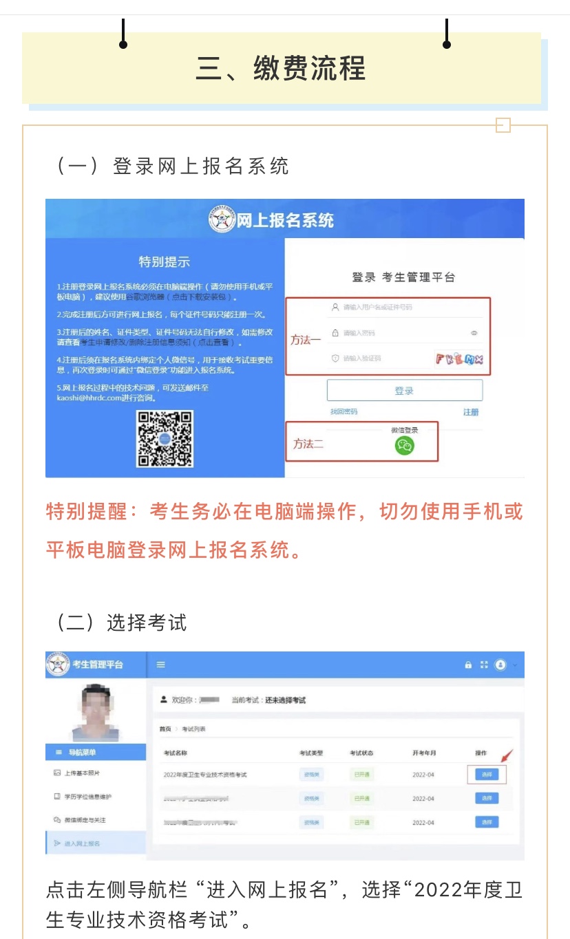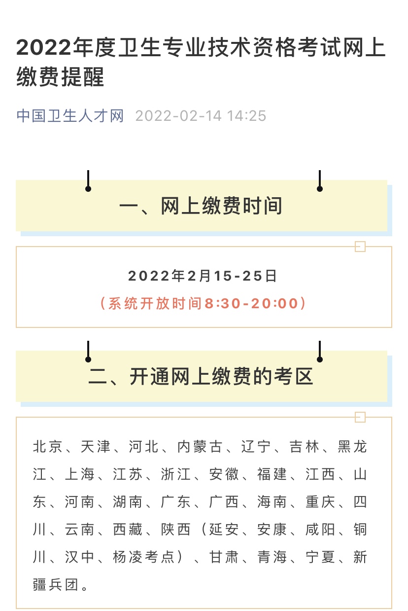 2022年度衛(wèi)生專業(yè)技術(shù)資格考試網(wǎng)上繳費提醒