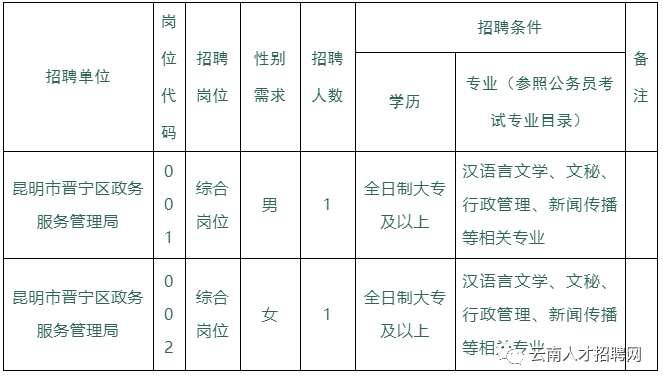 (一)崗位名稱:昆明市晉寧區(qū)政務(wù)服務(wù)管理局綜合崗位;
