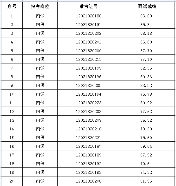 二、內(nèi)保崗位面試成績(jī)