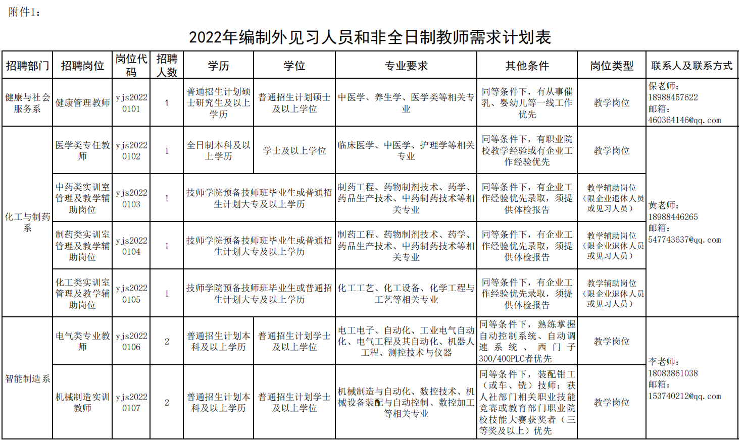 具體招聘崗位、人數(shù)及招聘條件,詳見《云南技師學(xué)院(云南工貿(mào)職業(yè)技術(shù)學(xué)院)2022年公開招聘編制外見習(xí)人員和非全日制教師計(jì)劃表》(附件1)。