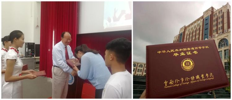學(xué)生完成培養(yǎng)方案要求的教學(xué)內(nèi)容,成績(jī)合格,符合畢業(yè)條件,由云南外事外語(yǔ)職業(yè)學(xué)院頒發(fā)國(guó)家規(guī)定的普通高等學(xué)校??飘厴I(yè)證書(shū),享受國(guó)家普通高校畢業(yè)生待遇。