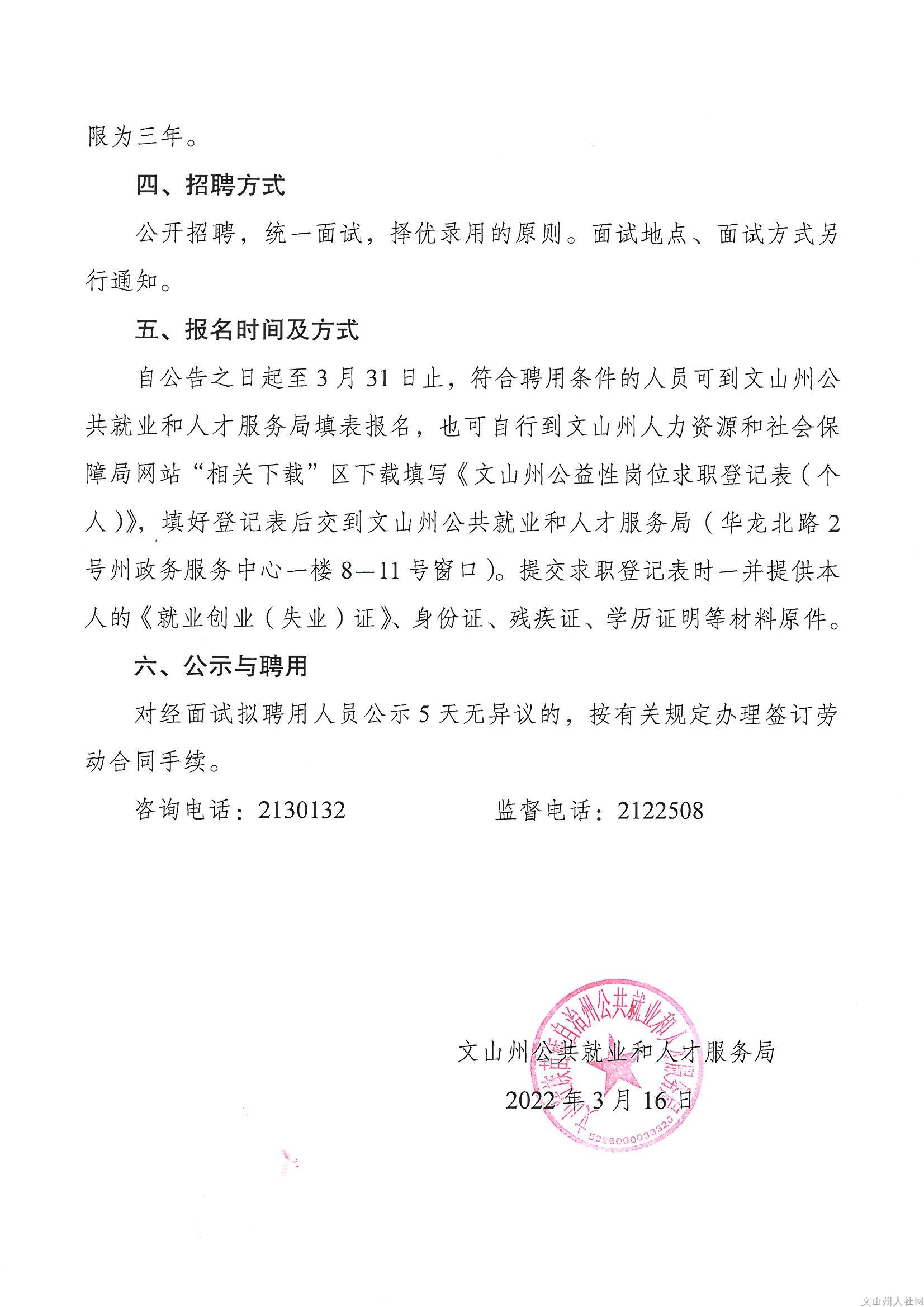2022年中共文山州機(jī)構(gòu)編制委員會辦公室招聘公益性崗位人員公告
