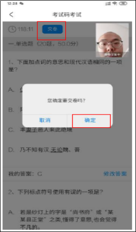 (六)考生需配合監(jiān)考人員線上監(jiān)考,考試期間全程保持前置攝像頭不被遮擋,視頻信號正常。考生需根據(jù)監(jiān)考老師的提醒,適時做出回應,監(jiān)考老師有權核查考生的身份證及準考證件。在正式考試過程中只允許出現(xiàn)考生本人,不得出現(xiàn)任何其他人員,一旦出現(xiàn),視為考試違規(guī),按照相關規(guī)定取消考生資格及其考試成績,一切后果由考生自負。