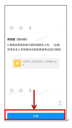 自我介紹和才藝展示視頻錄制與上傳題的操作過程一致。兩道視頻題完成后,點擊下一步按鈕。確保全部題回答完畢后,即可交卷。