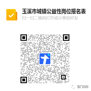 符合《玉溪市就業(yè)局關(guān)于城鎮(zhèn)公益性崗位安置對(duì)象報(bào)名的公告》第二條規(guī)定條件的就業(yè)困難人員需填報(bào)《玉溪市城鎮(zhèn)公益性崗位報(bào)名表》,掃描下方二維碼進(jìn)行填報(bào)。