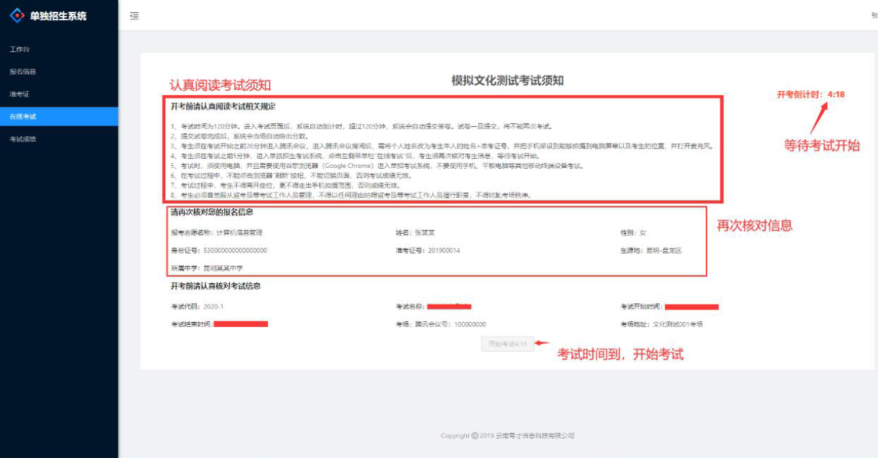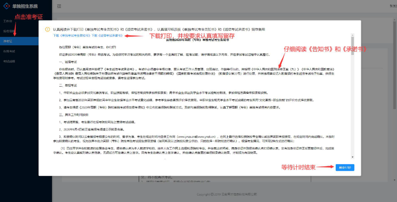 (3) 打印模擬準考證之前,考生須仔細閱讀《誠信考試承諾書》、《單獨考試考生告知書》。