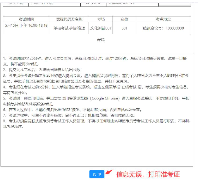 (4)打印模擬準考證。