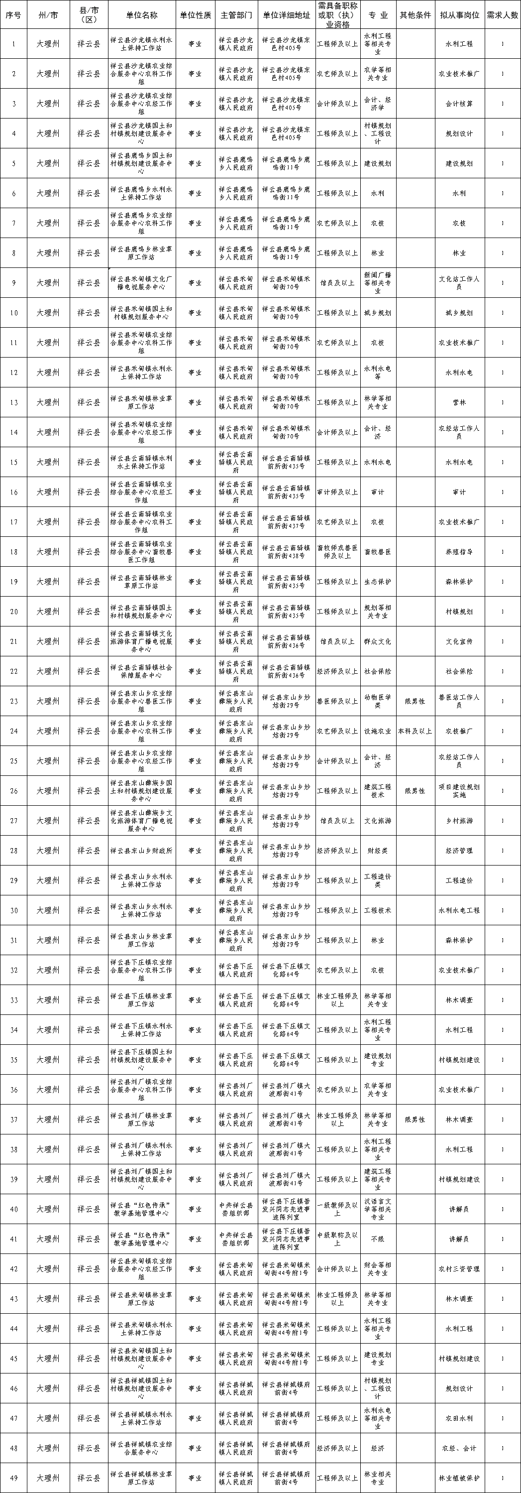 2022年祥云縣鄉(xiāng)鎮(zhèn)基層專業(yè)技術(shù)人員需求信息表