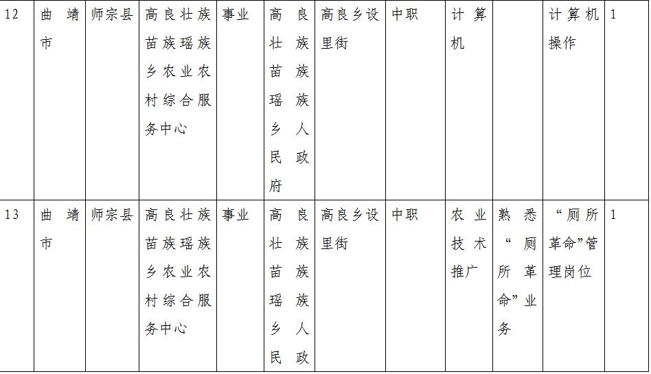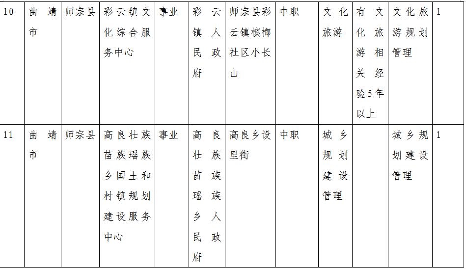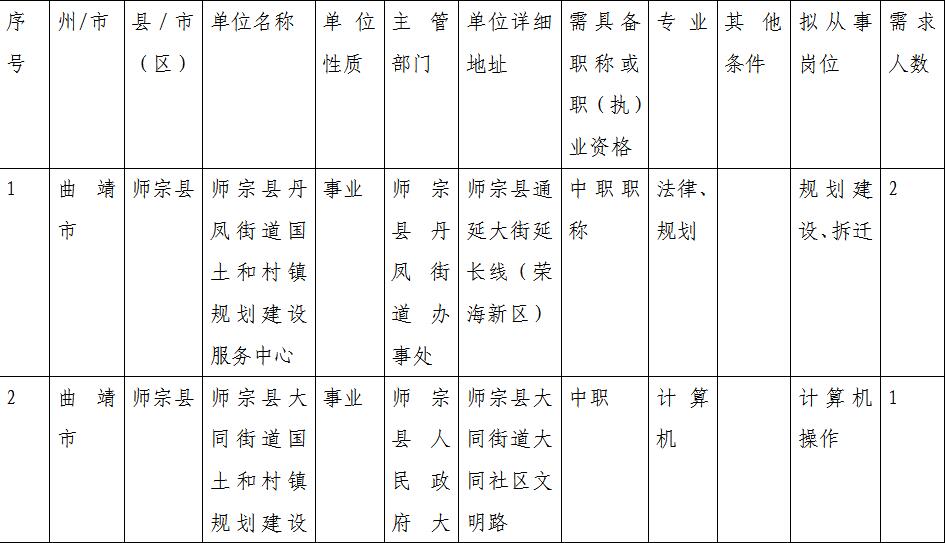 按照《云南省人力資源和社會保障廳 云南省財(cái)政廳關(guān)于印發(fā)云南省鼓勵專業(yè)技術(shù)人員到基層服務(wù)暫行辦法的通知》(云人社發(fā)〔2014〕97號)要求,現(xiàn)將2022年師宗縣鄉(xiāng)鎮(zhèn)基層專業(yè)技術(shù)人員需求信息公布如下: